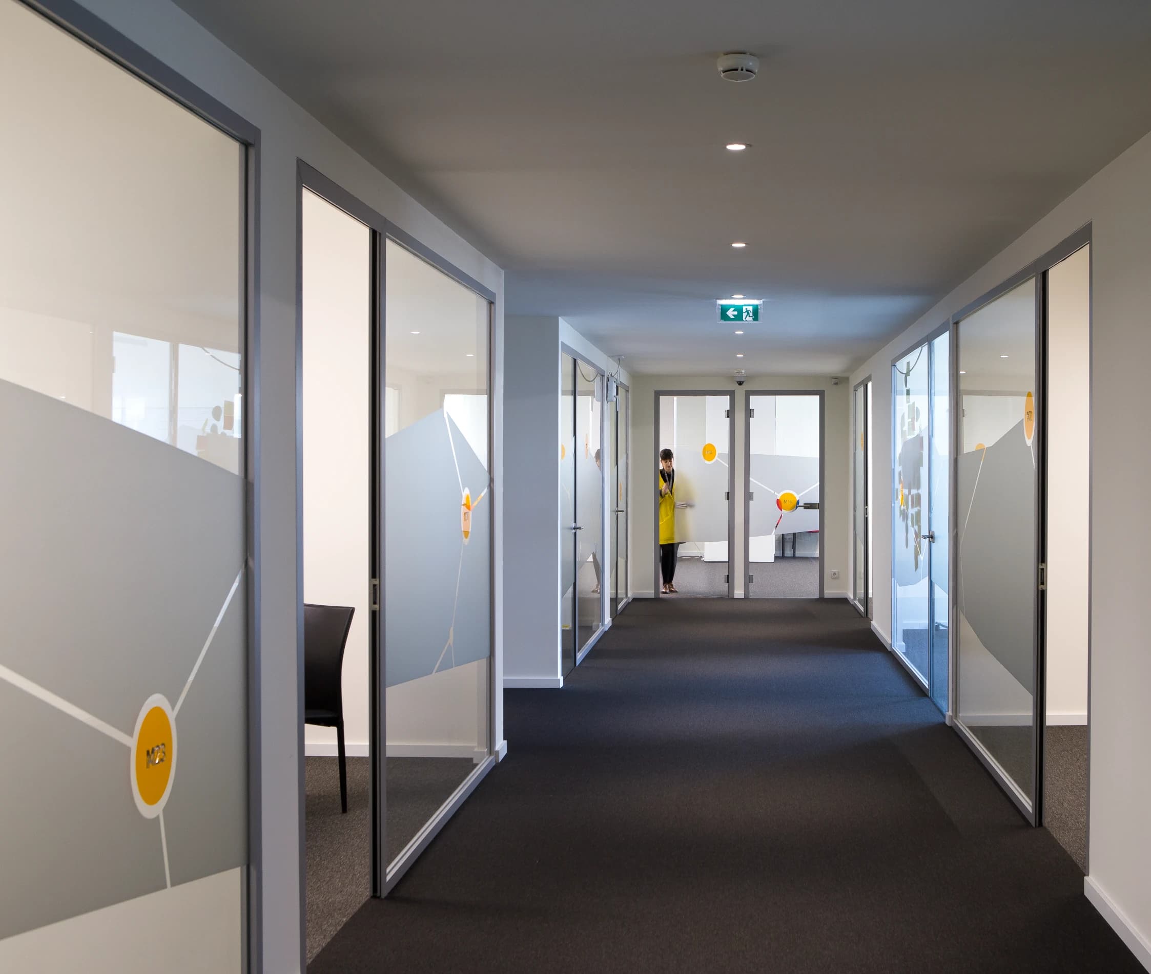 Developed in an industrial building, Infineon’s facilities were designed to create a spacious and organized working environment where natural light is a constant. There is an imposing open space on the ground floor which accommodates 450 workplaces, and small "cubes" emerge along the space serving not only a visual purpose – introducing dynamism and color - but also functional, as they allow for quick meetings and telephone conversations. By keeping the original six-meter room's height and industrial lights, the project respects its industrial history and adapts it to a versatile, adaptable, and large-scale office environment.