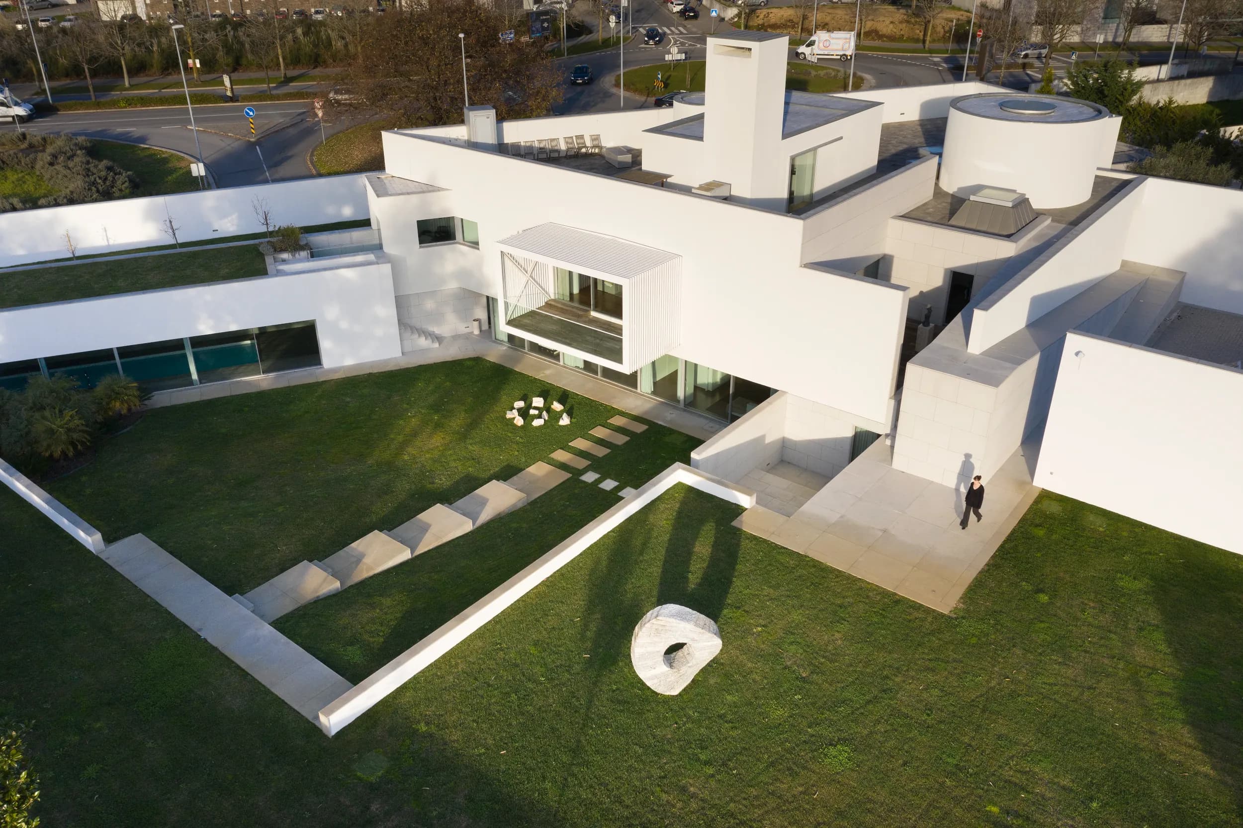 Chantre caracteriza-se pela fluidez de caminhos e pela simbólica e harmoniosa relação entre o edifício e as áreas verdes. A entrada da casa é apoteótica, reforçada por uma monumentalidade de abordagem moderna. Fortemente geométricos, os volumes são articulados a partir do cilindro de entrada, como se de uma rótula se tratasse. Através de uma dança entre formas, linhas, ângulos e muros, a casa articula elementos antigos e contemporâneos, numa poesia de referências.