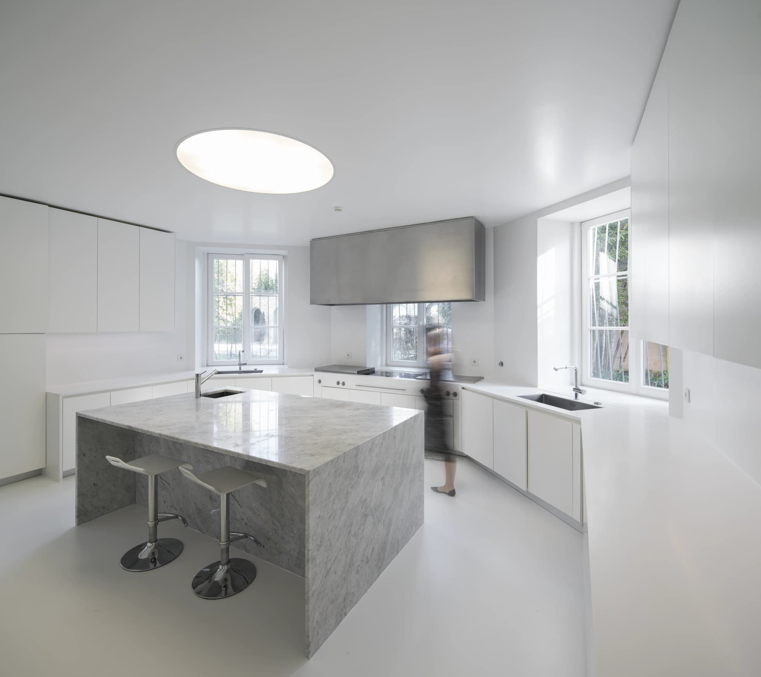 Foz House is a historical residence on which documents dated from the 17th century are known. The challenge was to adapt the existing building to the daily life of a new family, with the least possible impact on the former house. The subject of the most extensive intervention was the main building, which presented a very poor state of conservation. The back of the volume was demolished, and the second floor was transformed into a copper-coated volume that reinterprets the dignity of the original building. Fully rehabilitated, the house respects and magnifies its cultural and historical past.