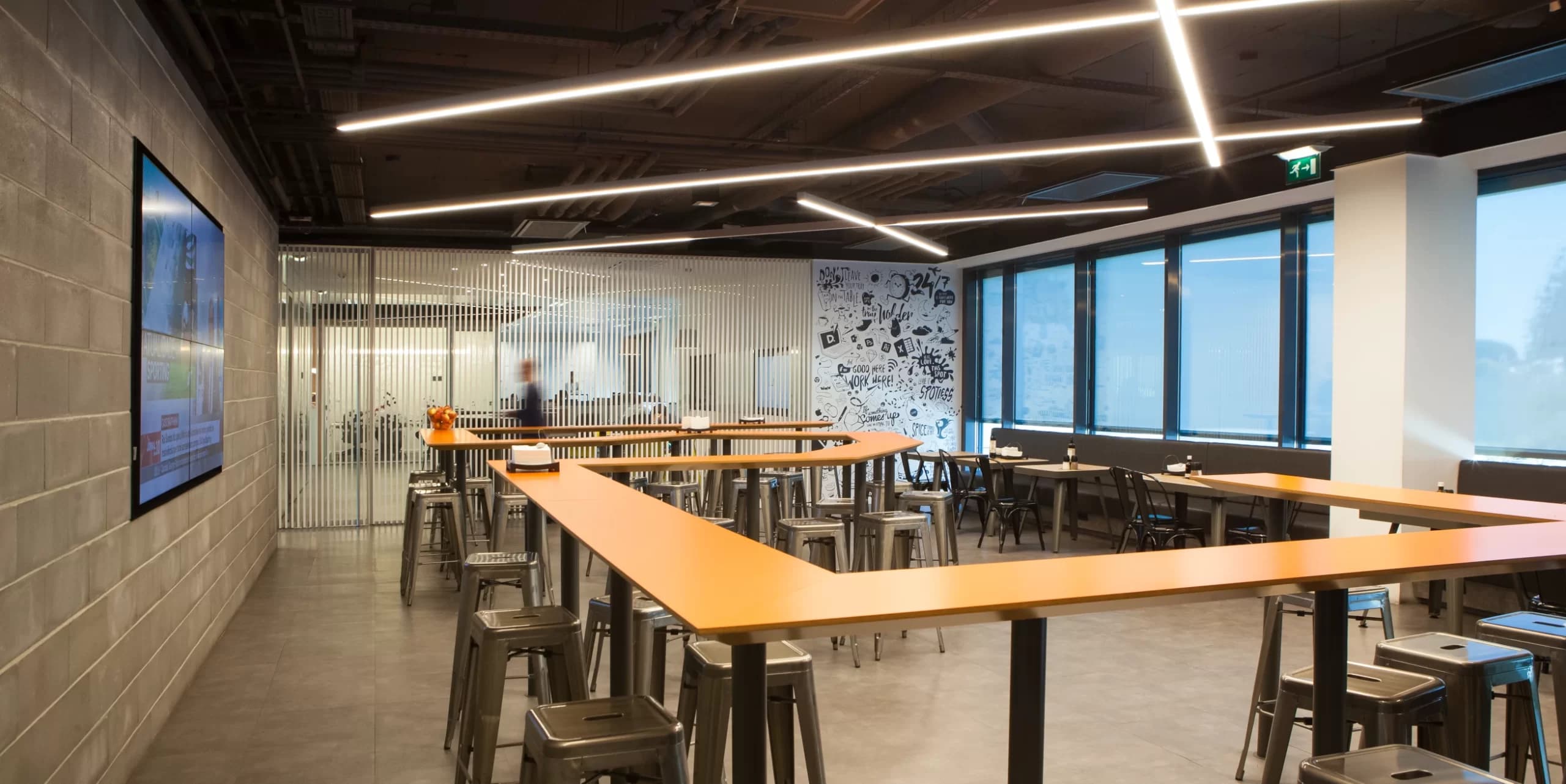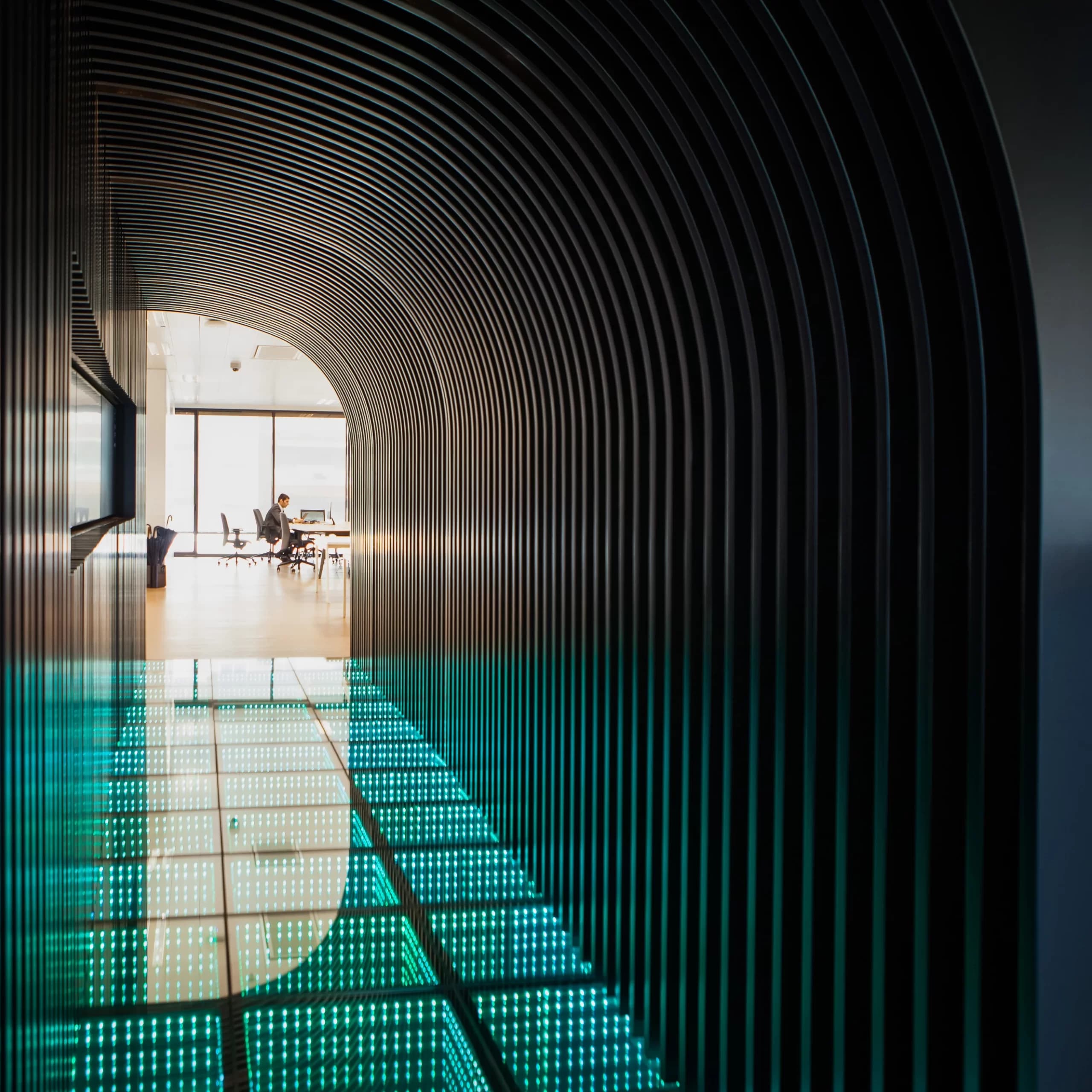 Constituted by different spaces based on the development of distinct environments, the building stands out for its idiosyncratic architectural features and sophisticated interior design that involves visitors in an immersive technological modernity environment. Thanks to the maximum attention given to every detail, be it the chromatic options and materials or the furniture’s scrupulous design, the employees are provided with a pleasant and inspiring environment. The adaptable and versatile spaces throughout the whole building result in flexible and customized solutions.