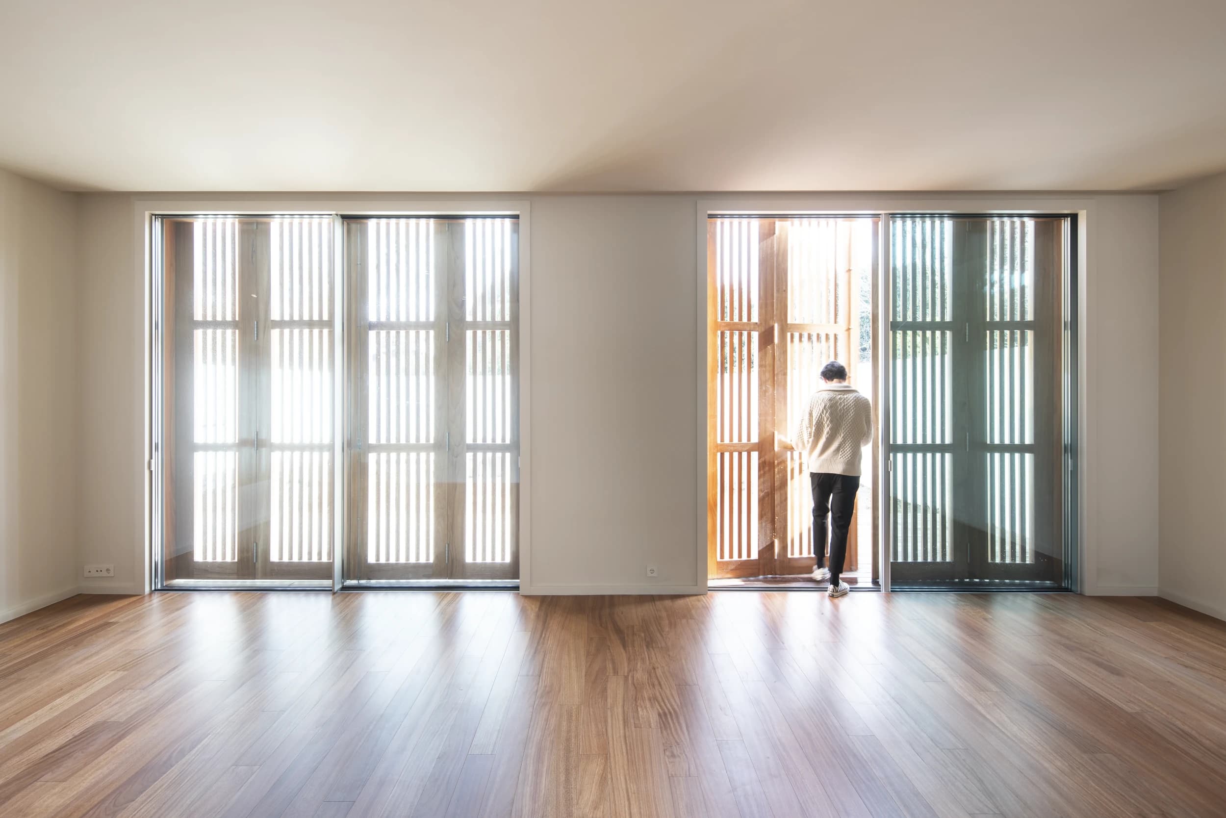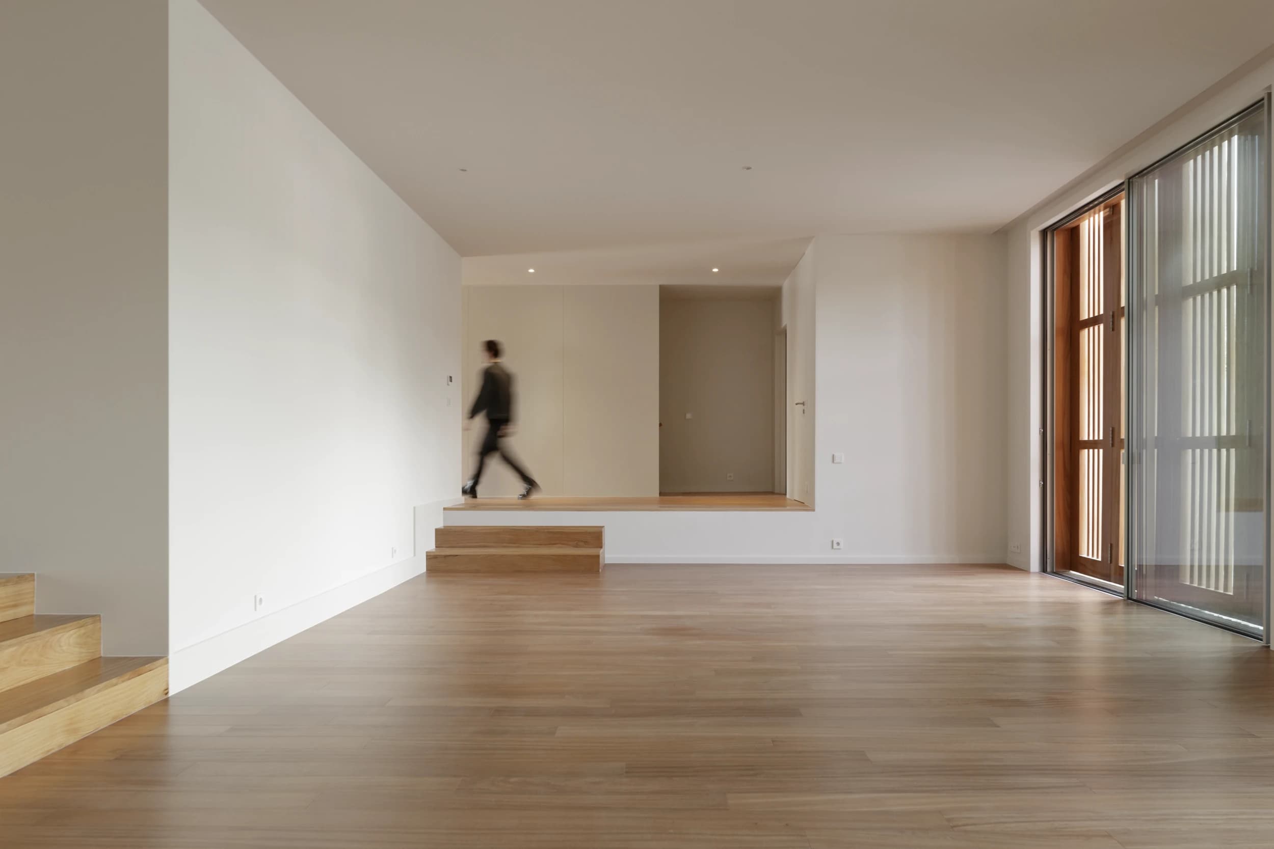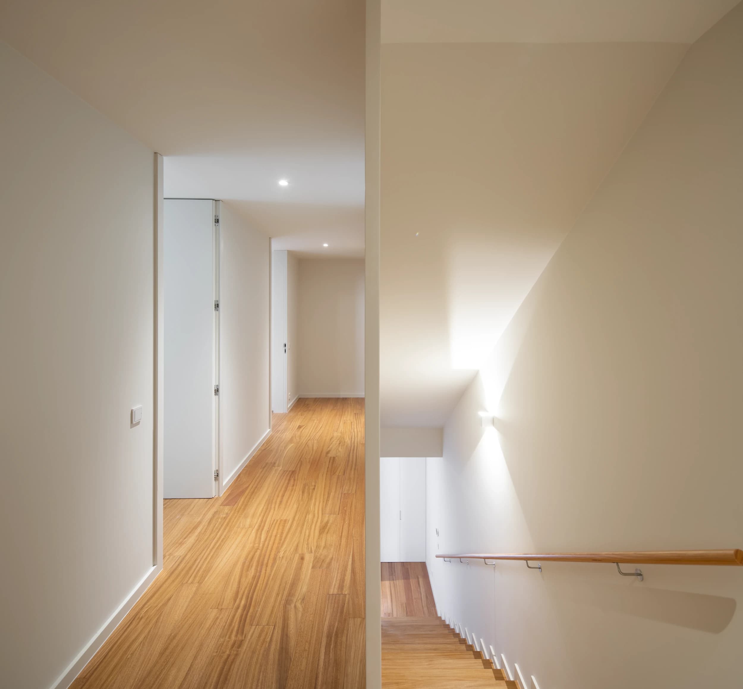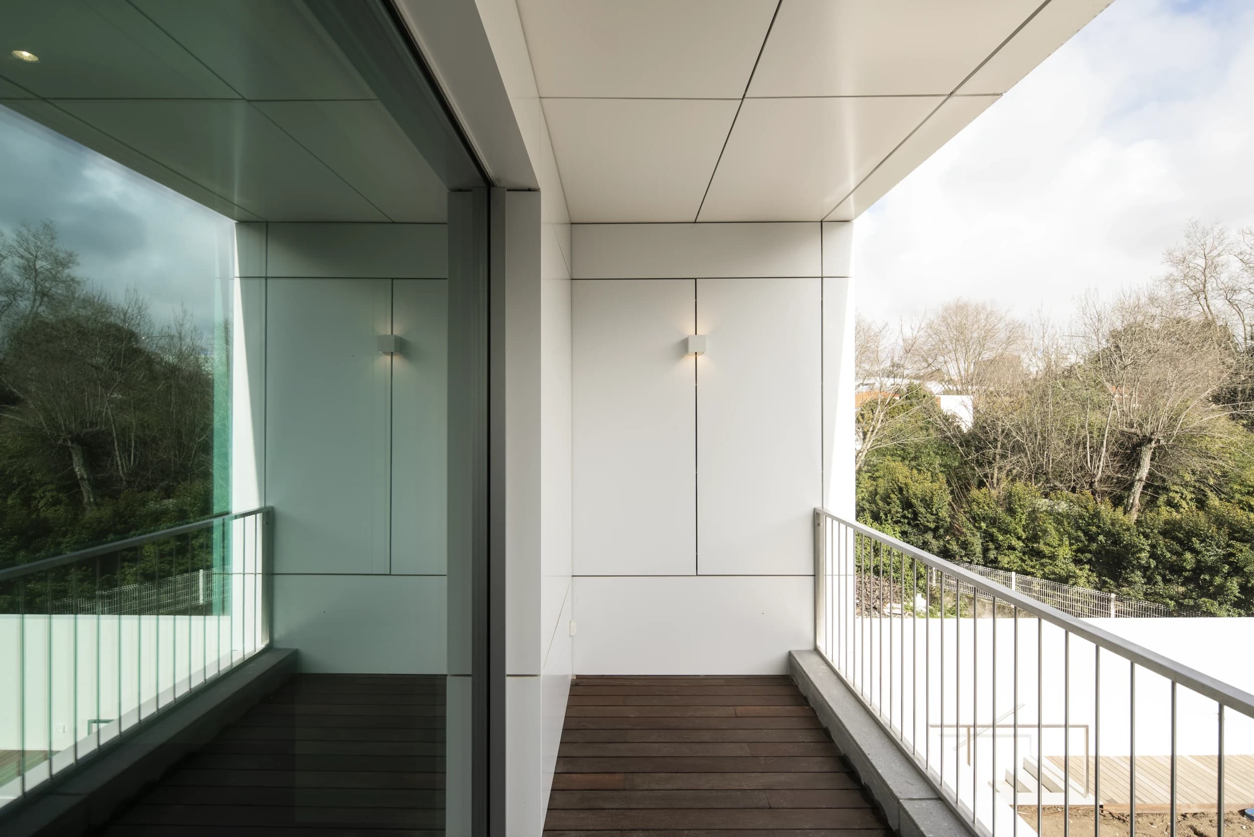 Quinta da Vilarinha é um projeto assente na construção de três habitações unifamiliares agrupadas em banda implantadas num volume paralelepipédico único com três pisos acima do solo e uma cave. O desenho do volume faz uso do contraste entre o revestimento do piso superior, de chapa de alumínio e painéis de betão branco, com o volume que constitui o embasamento, revestido a réguas de madeira maciça. O piso superior não ocupa a totalidade da área de implantação, possibilitando a criação de um pátio externo, sobre parte do piso inferior, que permite desfrutar em pleno da vista sobre o parque e o oceano.